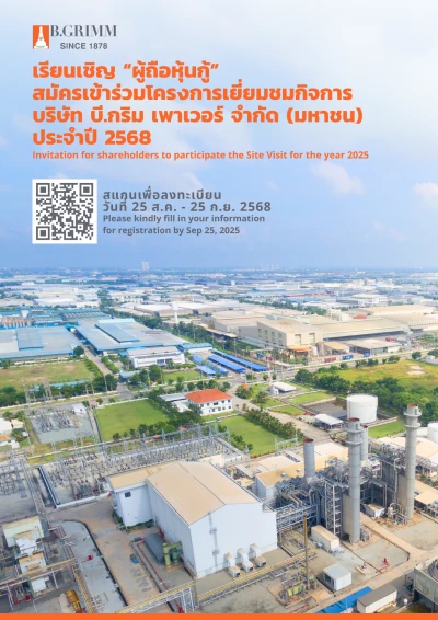 - If the number of participants exceeds the available slots, B.Grimm Power will select participants through a random draw from among those who have registered properly and meet the specified conditions. The decision of B.Grimm Power shall be final.
