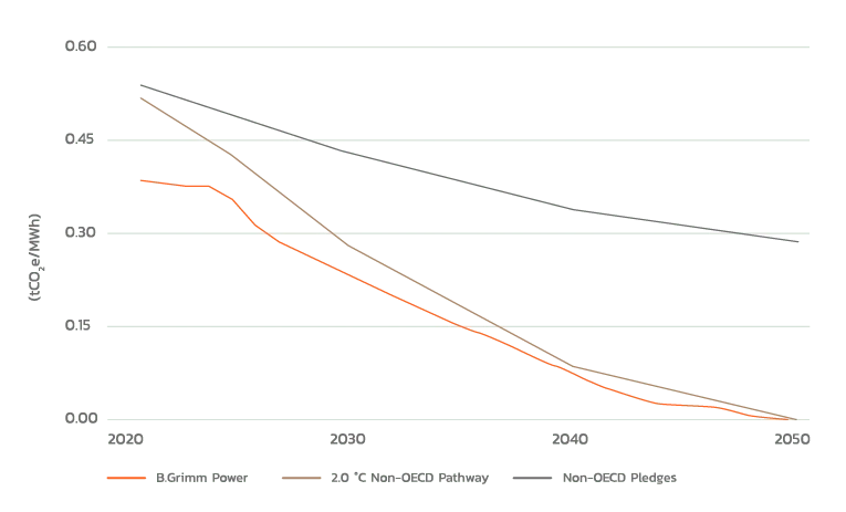 B.Grimm Power is firmly committed to achieving Net Zero Carbon Emissions by 2050, in alignment with the Paris Agreement. Our transition strategy is aligned with the International Energy Agency’s (IEA) 2.0°C pathway for non-OECD countries, while supporting global efforts to limit temperature rise to well below 2°C. While driving decarbonization, we continue to ensure a stable and reliable electricity supply, particularly through our cogeneration power plants, and are actively increasing the share of clean energy in our portfolio. Our strategy reflects a balanced approach that integrates climate responsibility, energy security, and industrial competitiveness.