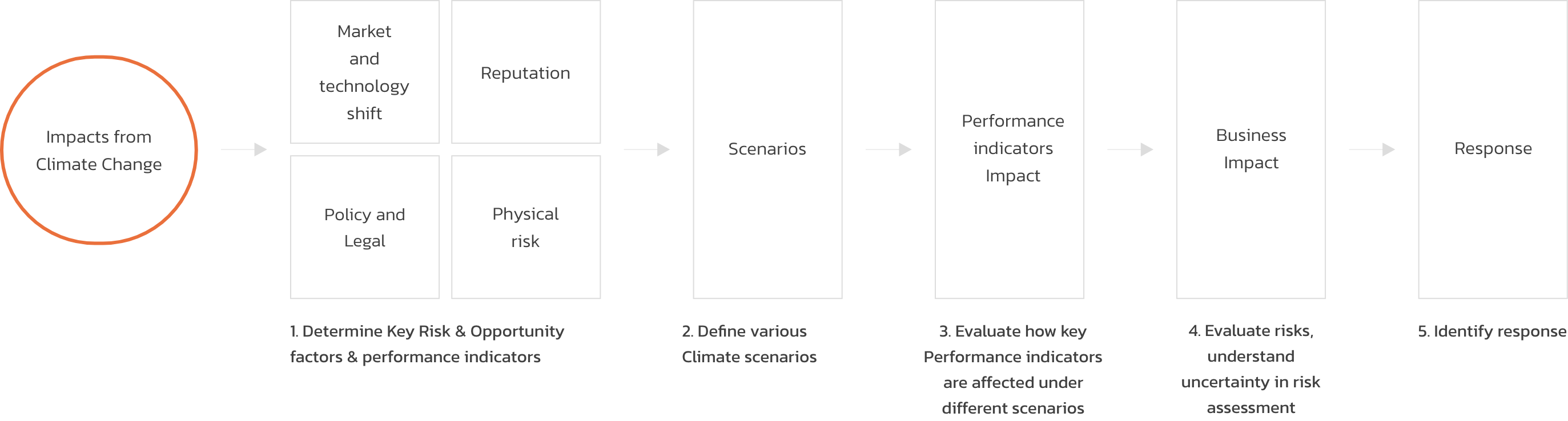 - Assessing the potential impact of climate-related risks on the company's operations, finances, and reputation, including risks associated with extreme weather events, changing regulatory requirements, and shifting consumer preferences.